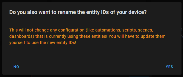 The idea came to me when I changed the name of a device. The user then gets asked whether the entity IDs should also be changed. I saw two issues here: