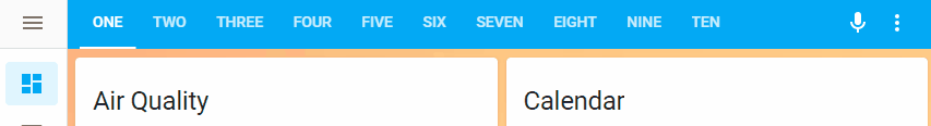 This compacts the header to combine both buttons and tabs. Additionally, this modifies views so their backgrounds extend behind the header in Lovelace. When using a transparent color or image for the header background the view's background will now show underneath.