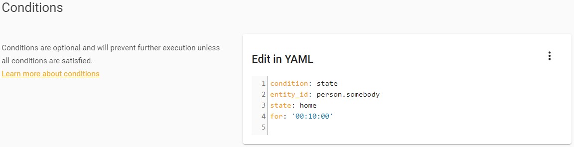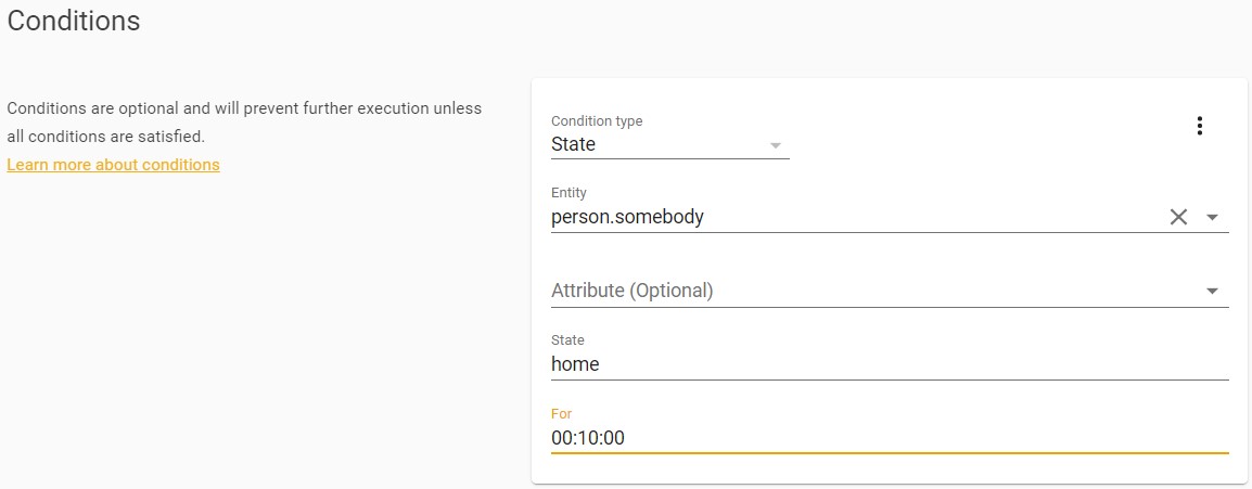 for:configuration is documented here (see first example):https://www.home-assistant.io/docs/scripts/conditions/#state-condition