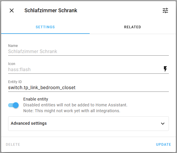 Entity registry: Translate advanced section + direct link to entity customization#8181