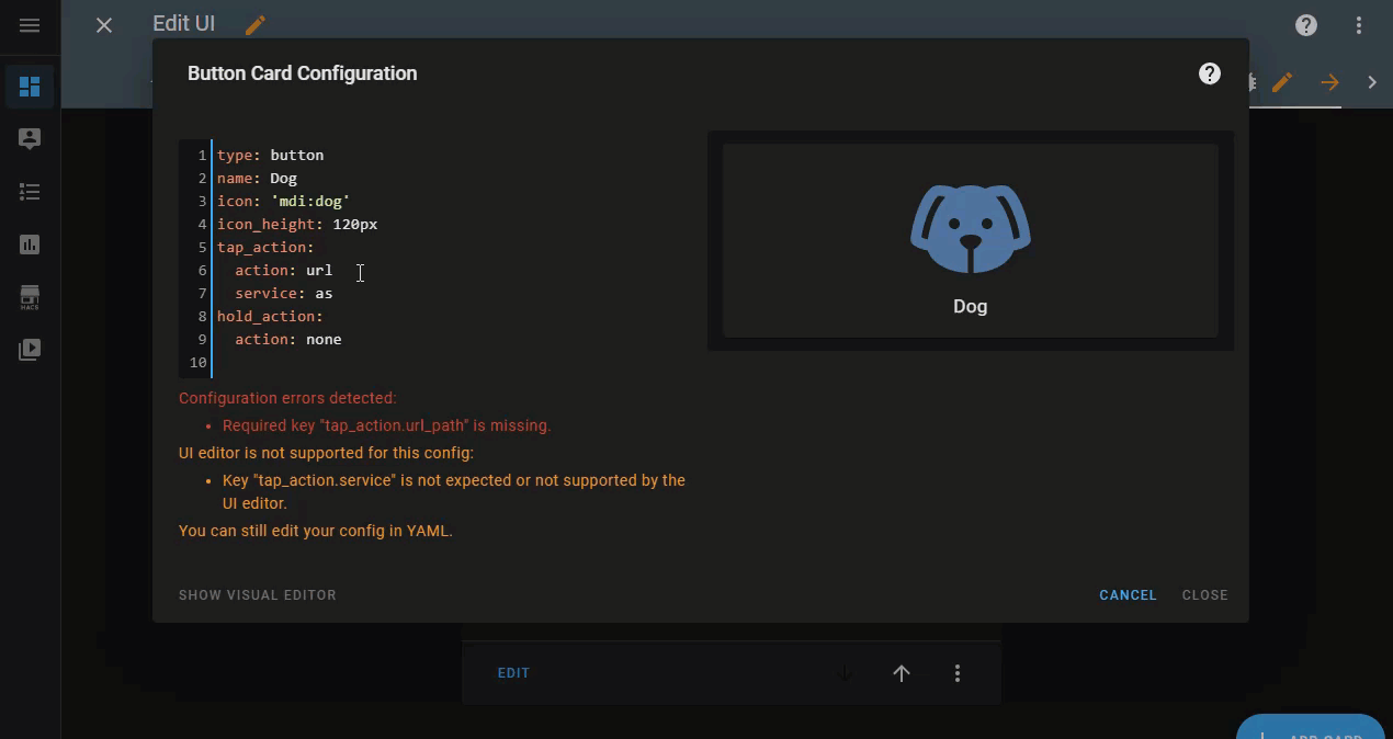 More comprehensive YAML config errors + dynamic checks for action configs#8217