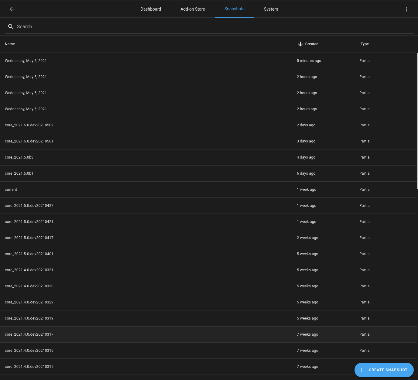 Rewrites the Supervisor -> Snapshots tab to use data table