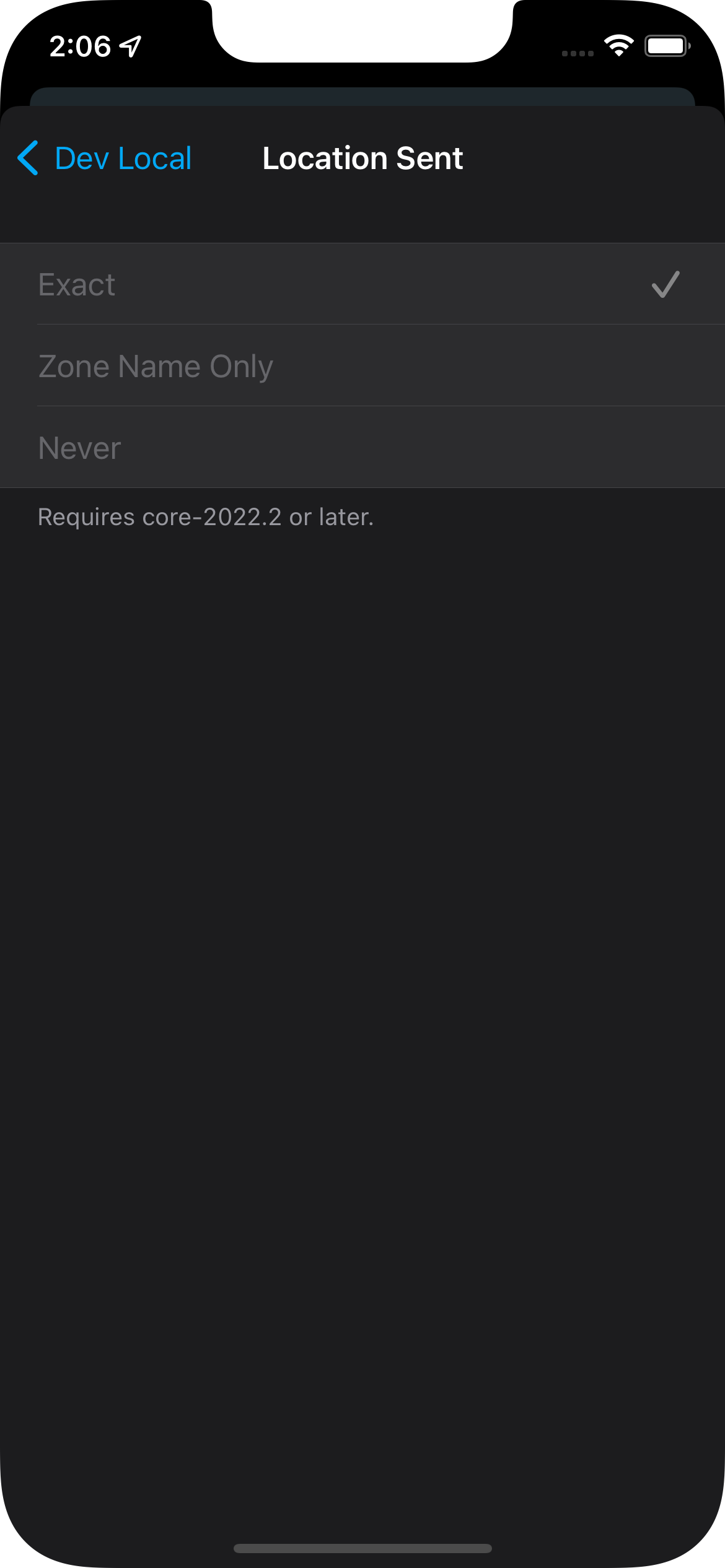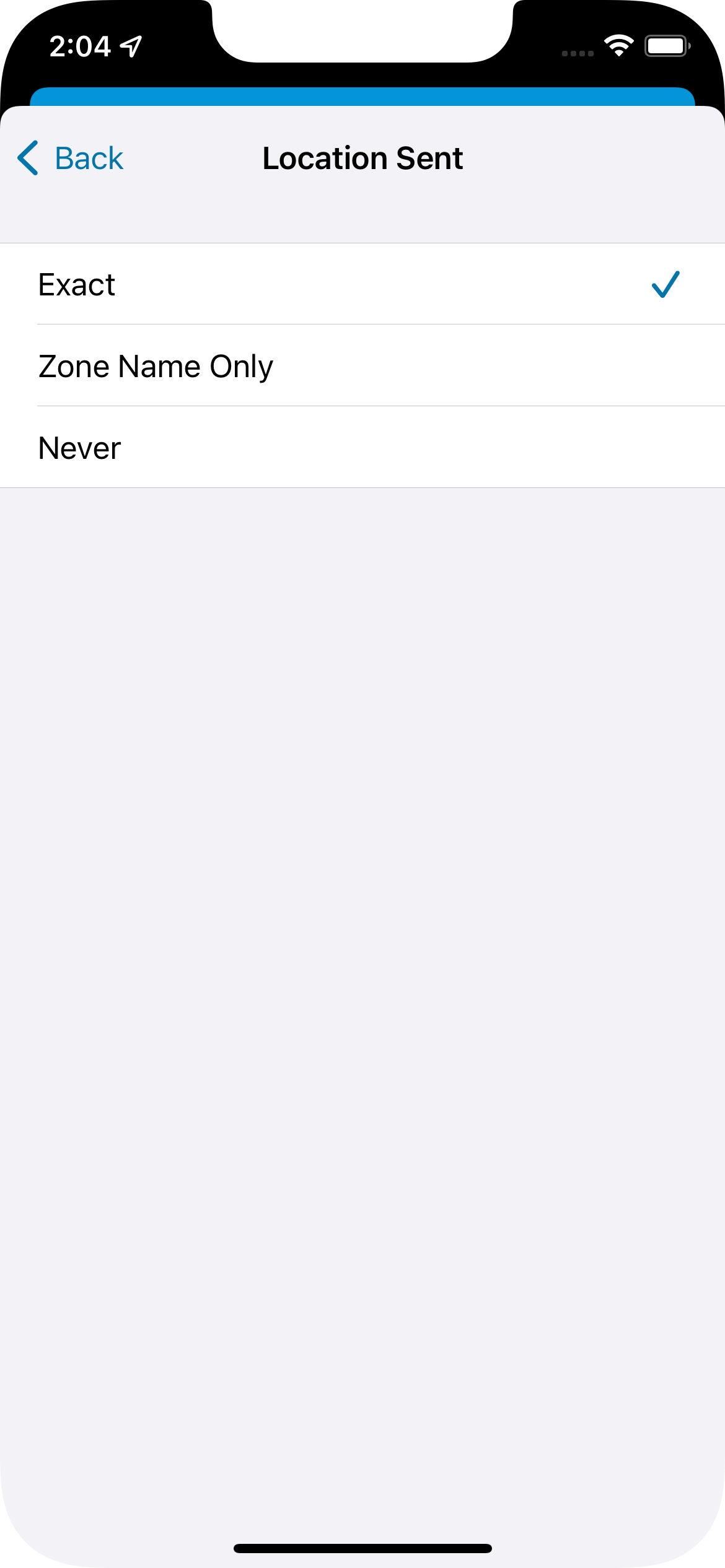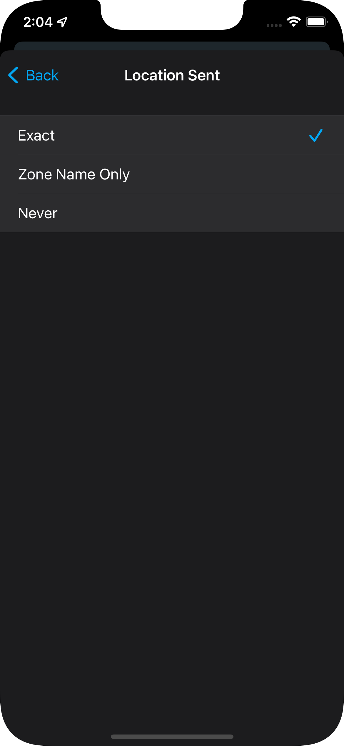 Allows sending exact locations (current behavior, gps coordinates), no locations (sets the device tracker to 'unknown' effectively), and zone-only locations (we send