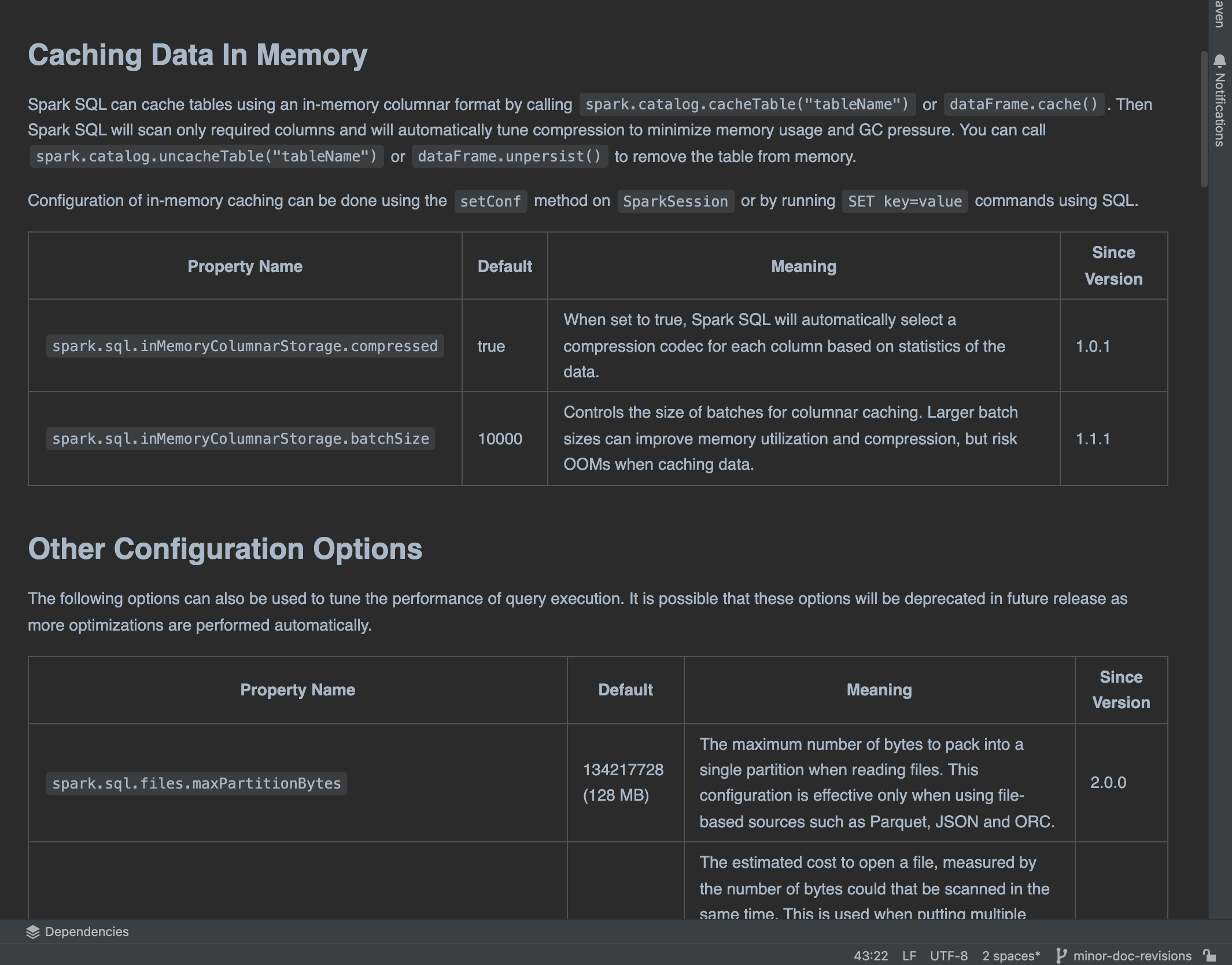 …adability and grammar ### What changes were proposed in this pull request? I made some small grammar fixes related to dependent clause followed but independent clauses, starting a sentence with an introductory phrase, using the plural with when are is present in the sentence, and other small fixes to improve readability. https://spark.apache.org/docs/latest/sql-performance-tuning.html <img width="1065" alt="Screenshot 2022-11-04 at 15 24 17" src="https://user-images.githubusercontent.com/7563201/199998862-d9418bc1-2fcd-4eff-be8e-af412add6946.png"> ### Why are the changes needed? These changes improve the readability of the Spark documentation for new users or those studying up. ### Does this PR introduce _any_ user-facing change? Yes, these changes impact the spark documentation. ### How was this patch tested? No test were created as these changes were solely in markdown. Closes #38510 from dwsmith1983/minor-doc-revisions. Lead-authored-by: Dustin William Smith <[email protected]> Co-authored-by: dustin <[email protected]> Co-authored-by: Dustin Smith <[email protected]> Signed-off-by: Sean Owen <[email protected]>