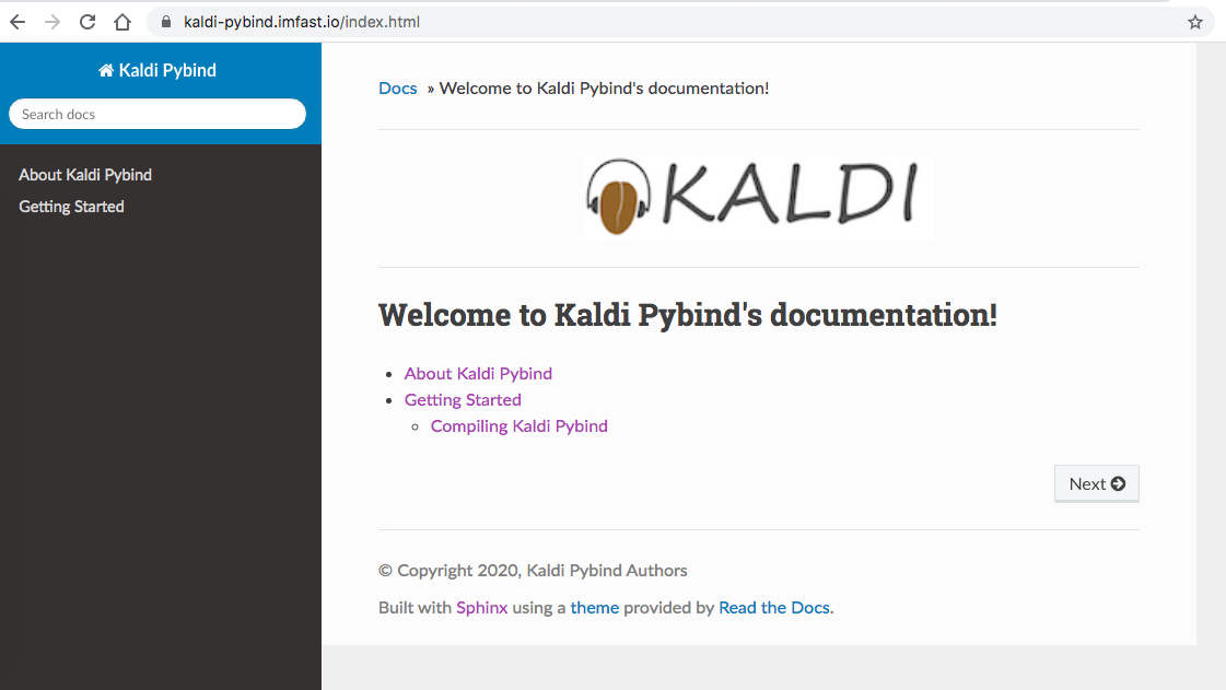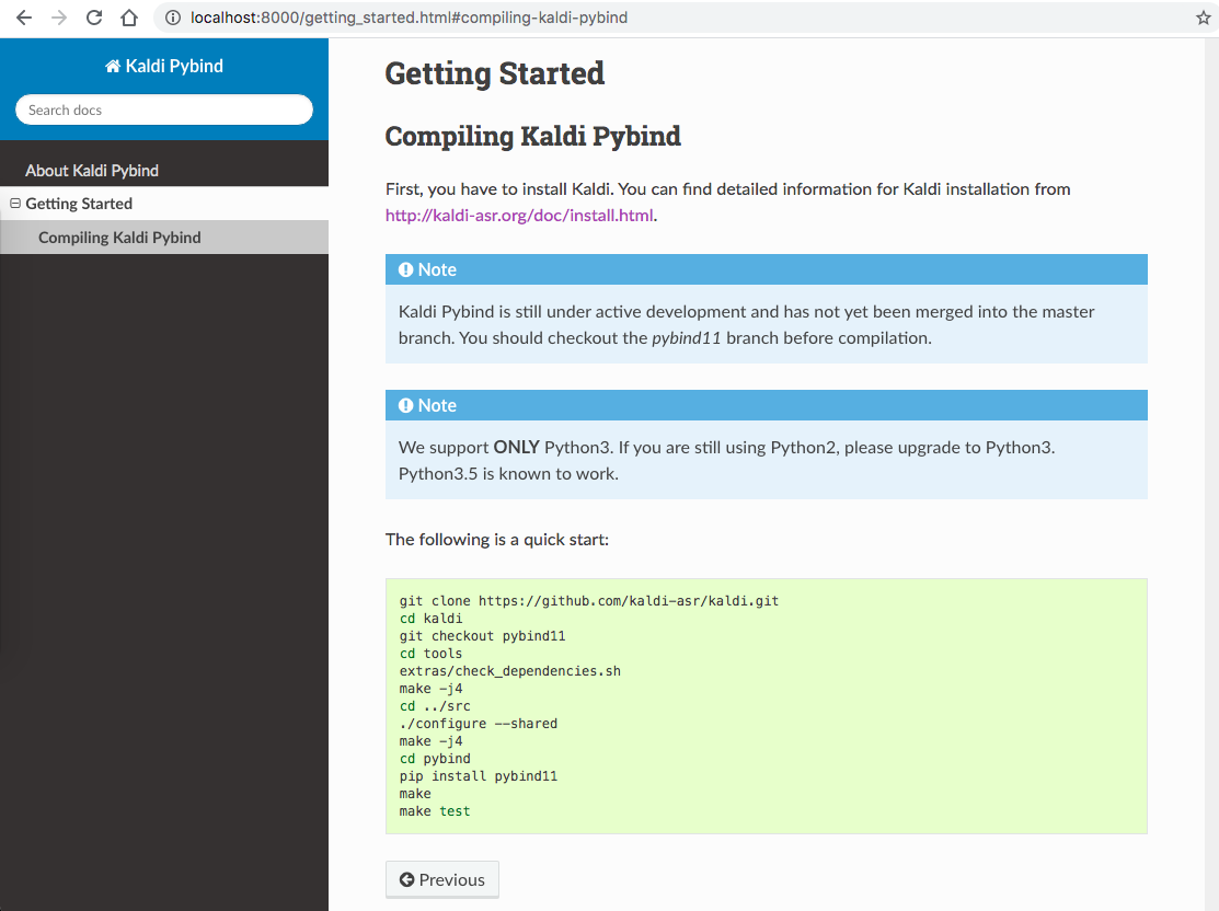 For developers, you can follow https://github.com/mobvoi/kaldi/blob/fangjun-doc/src/pybind/doc/developers.md to generate documentation locally.