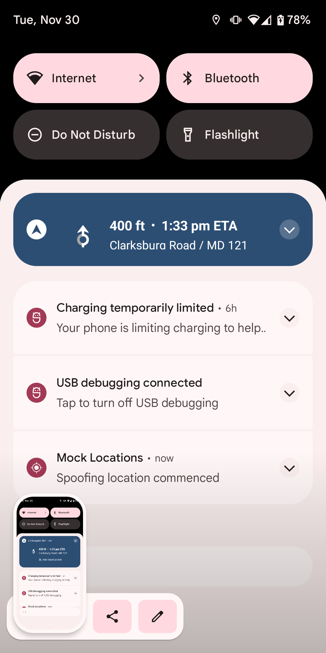 I replayed a very long route with 10x speed and memory didn't seem to grow and the update time of the notification was taking on average ~4-5ms on my device and is on par with main. Admittedly, this is still a lot of time, especially if we consider 10Hz location signal and effectively a notification update every 100ms. In this case we're looking at ~5% of time of the main thread spent just at updating the notification. However, most of that is spent in the Android SDK's notify which we have no control over.