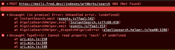 I got this error when I run the app, because I didn't create the index or import the data yet. It's a good practice to use try catch to manage potential errors like this one.