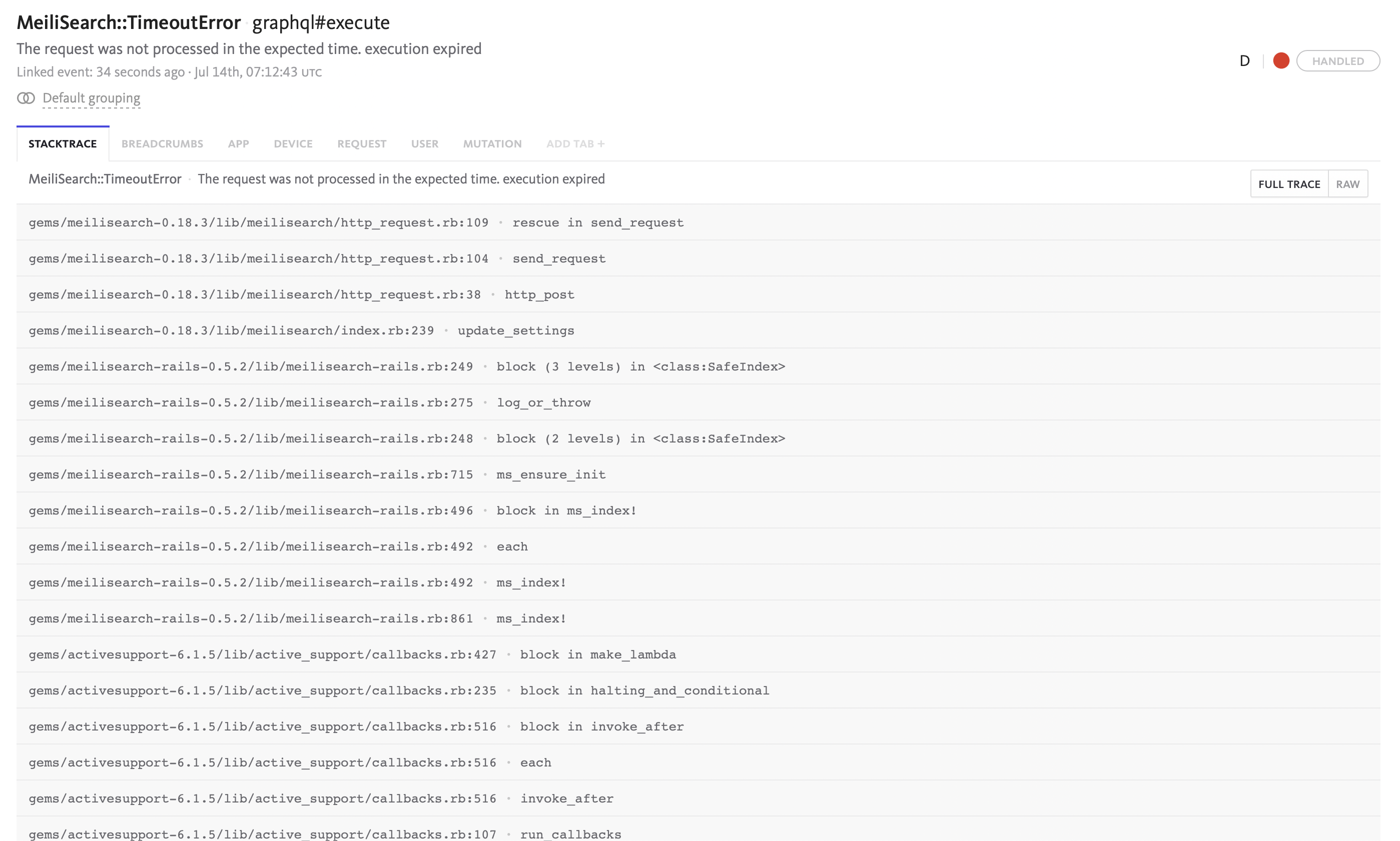 I have configured a Rails app with a misconfigured Meilisearch instance that's not responding.