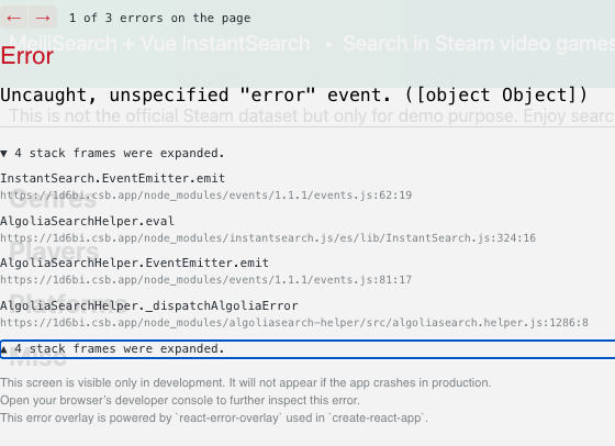 I used the codeandbox demo, and I pointed the demo to my own MeiliSearch instance (changed the URL and token in the instance creation in Vue.js).