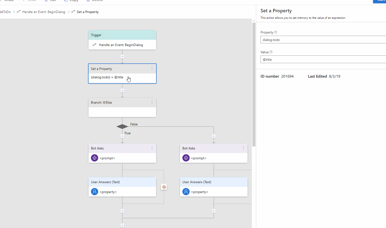 …update all the samples (#920) * PackageUpdate * Update package to 0925 * Update package to 928 * Update package to 4.Future: 4.6.0-Daily-2019-10-10-01 * Update schema and Templates * Update sdk.schema * update code to align with schema change * Remove createdAt and updatedAt in all the samples * fix cards sample * Update packages to botbuilder-dotnet master 4.6.0-preview-191012 * DialogFactory refactor (#1033) * WIP * More WIP * Refactor dialog generation code into shared-menus * Replace server side dialogTemplate.json * Fix test * WIP * Merge from master * Adds tests * Change shared-menus to shared * Revert schema changes * Cleanup * fix samples (#1066) * Removes sandwich bot (#1086) * Removes sandwich bot * fix lint error * enable eslint security rules (#1084) * do not use dangerous inner html in react * consolidate eslint dependencies to root * fix lint errors * remove sample-json-editor * consolidate eslint packages and bump ts version * update client for new ts-eslint rules * apply lint changes to obiformeditor * apply new lint rules to visual editor * apply new lint rules to shared-menus * apply new lint rules to server * apply ts fixes * add temp fix for adding new files * fix merge build / lint issues * enable eslint security rules * fix lint error after merge * remove recognizer options from choice input form (#1087) * Updates to interruption sample (#1025) * Fixes #950 #949 * Updates to validation * Fix Luis republish issue when settings change but luis files not change (#1072) * fix republish issue and fix code mirror settings update bug * polish * fix comments * polish * fix comments * fix comments in another way * fix issue (#1102) * Add shortcuts for undo / redo (#1071) * short cut for copy paste undo redo * refactor keyboardZone & close copy&paste shortcut * revert changes in 'KeyboardZone' * revert some unnecessary changes * rename undo/remo event type * fix keyboard navigation after switching tabs or apps (#1075) * rewrite the keyboard zone event listener * change Props interface name, expose native key event * use includes instead of find * update pr template to reference GH references (#1104) * fix bug: show recent bot project (#1103) * remove designer timestamps from samples * fix * Fixed steps sample bugs * Fix Input_Samples * fix todo test * fix todo bug * fix tests * update SDKTypes and labelMap also fix some random schema typos * Some minor fixes * add "\r\n" to fix the CI test failure * Try to use Environment.NewLine to fix test case * Fix testcases by using Environment.NewLine * Update ToDoBotTests.cs * Add QnA Sample * [Form editor] Update shared schema (#1123) * add ActivityTemplate * update adaptive dialog * EntityRecognizer -> EntityRecognizers * extract $ fields to sharable function * update id property * input updates * update BeginDialog * update CancelAllDialogs * update ChoiceInput * add ConditionalSelector * update ConfirmInput * update DateTimeInput * update DebugBreak * remove extraneous fields * update DeleteProperty * update EditActions * update EditArray * update EmitEvent * update EndDialog * update EndTurn * add FirstSelector * update Foreach * update ForeachPage * update HTTPRequest * update IActivityTemplate * update IDialog * update interfaces * update IfCondition * update InitProperty * update LanguagePolicy * update LogAction * Update LuisRecognizer * add MostSpecificSelector MultiLanguageRecognizer * update NumberInput * update OAuthInput * update Trigger Conditions * update QnAMakerDialog * update regex types * update RepeatDialog * update ReplaceDialog * update SendActivity * update SetProperty * add StaticActivityTemplate * update SwitchCondition * update TextInput * add TextTemplate * update TraceActivity * add TrueSelector * update events -> triggers * move SDKTypes to own file avoids circular reference runtime errors * add to triggers instead of events when creating new trigger * update visual editor to reference triggers and OnCustomEvent * remove value from prompt form * update editor schema * fix navigating to actions from form * memoize form change handler * show dialog events in trigger creation * remove leftover anyOf * fix trigger event creation * update uiSchema * fix HttpRequest headers schema * improve obischema type * fix dialog options name fixes #1053 * fix tests * Update Dialog validation rules * Fix to some SampleBots * Fix tests