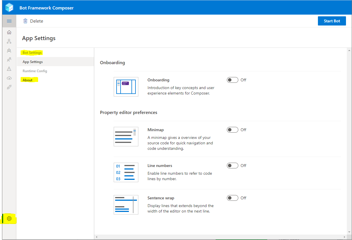 fix: #3309 Allow configuring app settings without opening a bot project #3454