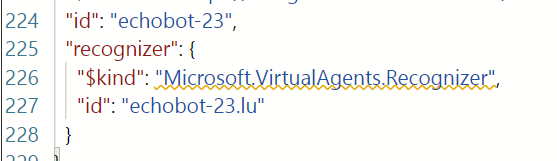 { "$kind": "Microsoft.SomeRecognizer", "projectId": "MyProject", "dialogId": "Dialog1", "locale": "en-us" }PVA