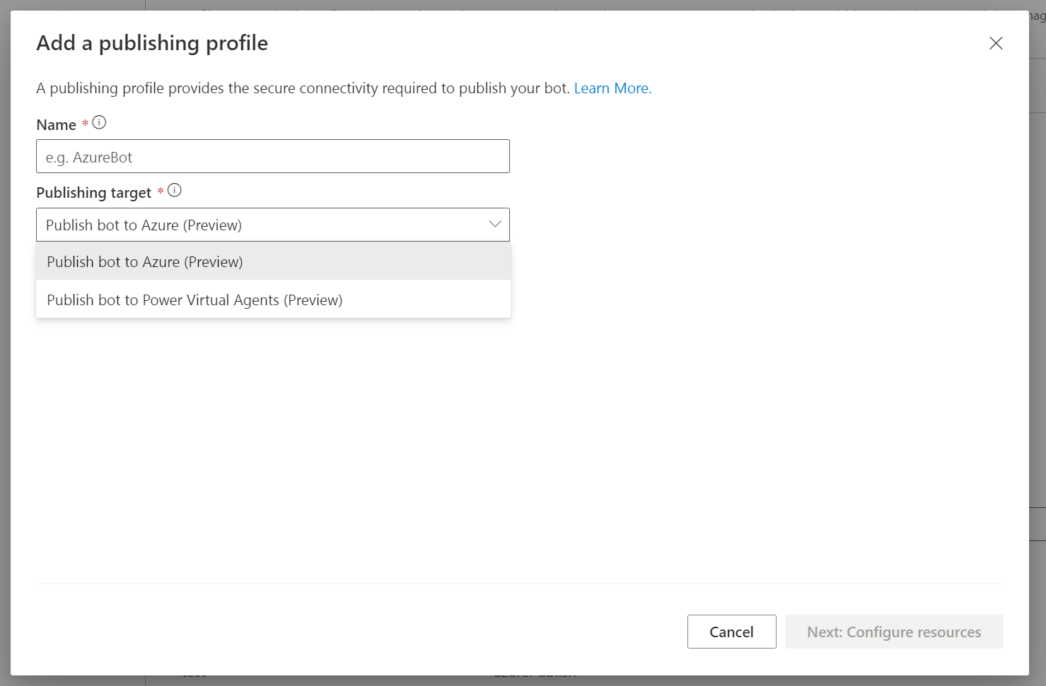 One a single item now appears for publishing to Azure
