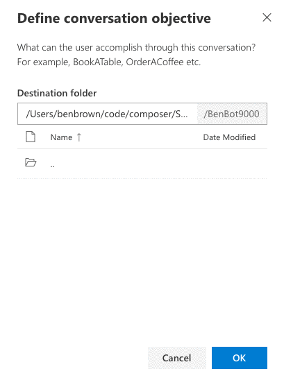 open bot on select only allow bot projects to be opened only show folders when choosing a destination folder
