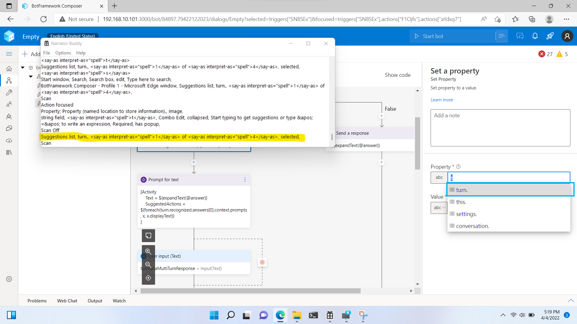 * a11y: ensure there is only one main landmark (#9074) * a11y: ensure there is only one main landmark Remove redundant main landmarks and add the landmark for pages where it is not defined Contains the following changes: - Removed MainContent component as it's not beeing used anywhere - Remove main role duplication from Disigner pages - Add main role to plugin pages - (Unrelated improvement) Link Language modal search field label with the search field * Fix lint issues * a11y: Add aria-required attribute to Form Editor required fields (#9079) * a11y: Add aria-required attribute to FormEditor required fields These fields are visually indicated as required. so add `aria-required` attribute for screenreaders. * Address review comments * a11y: fix aria-label content (#9092) Aria label should start from visible content. This PR fixes the occurrence pointed out in the linked bug. * a11y: fix project tre roles and aria (#9093) This improves aria for the Project Tree control. Includes the following changes: - Remove redundant aria-label causing two elements in the chain to have the same name - Remove redundant tabIndex and move keyboard handler to the place where the keyboard event happens - Make aria-labels to follow the rule: visible content goes first in the label * a11y: add support for intellisense (#9091) * a11y: add support for intellisense The PR adds accessibility properties for the intellisense component, wires them with input components and fixes some observations. List of changes: - Added `aria` attributes set into `Intellisense` component, so it to be passed down to any input rendered - Updated fields. where it makes sense. to include a11y parameters passed by Intellisense - Added scrollIntoView for CompletionElement to ensure the selected element is in the view - Refactored CompletionList a11y properties. Now list has a listbox role when showing suggestions * Fix tests * Fix indent * Fix nit * a11y: address accessibility insights issues (#9148) * a11y: improve debug header aria * Add aria attributes * Exclude empty button from keyboard navigation * a11y: enforce HelpTooltip aria * Make HelpTooltip `aria-label` property required * Remove `aria-hidden` attribute from the help tooltip icon * Add missing aria-labels and roles * Allow focusing tooltips inside menu items * Rework types * a11y: add aria for knowledge base buttons * Add `aria-label` for icon-only buttons * a11y: improve publish screen aria * Add aria for controls * Add column names * a11y: split button aria * Add accessible split button component * Refactor Library split button * a11y: package manager aria * add missing aria labels for controls * Revert "a11y: split button aria" This reverts commit da7e713. * a11y: split button aria * Add accessible split button component * Refactor Library split button * Refactor Chat header split button * a11y: debug panel aria improvements * Add label for bot picker * a11y: upgrade webchat * Upgrade WebChat to the latest version as it fixes some accessibility issues * Revert "a11y: upgrade webchat" This reverts commit 9762cf0. * a11y: improve get started panel aria * Add close button label * fix lint * chore: update electron to currently supported version * Trigger build * Use Electron v14.2.6 * Trigger build * Fix mac signing process * Implement custom electron build fetching * Revert "chore: update electron (#9056)" This reverts commit 226b4df. * fix path