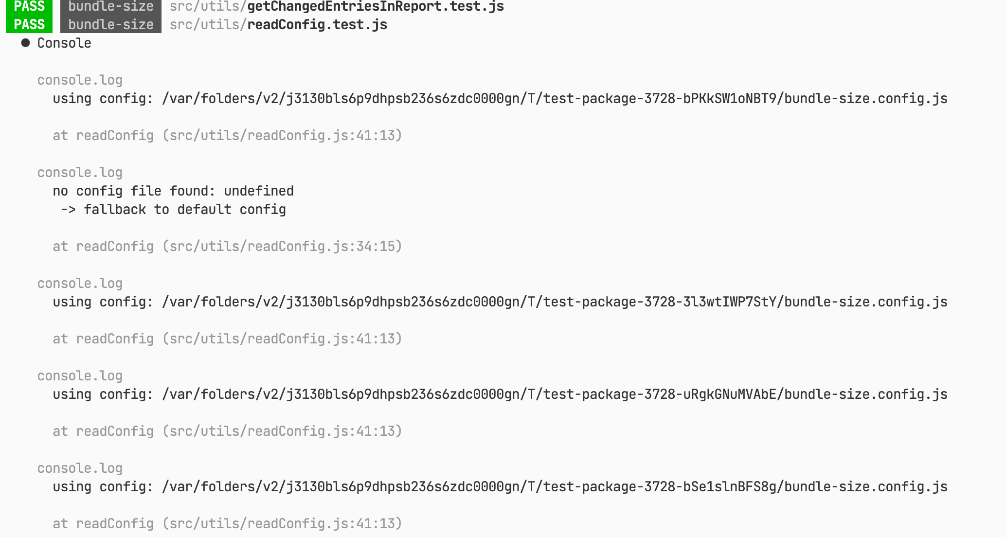 git rev-parse, which relies on actual git repo presence.2. less console spam when running tests: