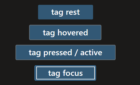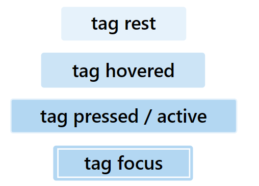 These designs deviate from the portal only in the dark theme text color. The black text against the blue background was not readable. I also noticed that the rest background remains the same for al states in dark theme, but the border color changes. I believe this PR will unblock the issue of no tags in Azure Theme for now, and we can fine tune the background colors / text / border colors at a later time.