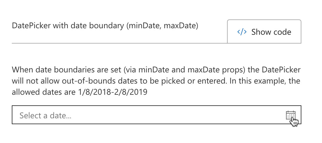The last 3 datepicker examples were datepickers with text input. The first two datepickers had a label, so they were receiving the pointer style. The third datepicker (picture below) doesn't have a label and wasn't getting the pointer css styles.