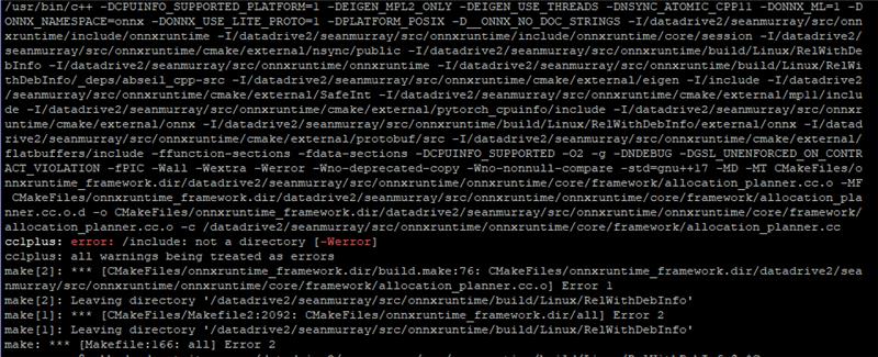 With onnxruntime_USE_NCCL flag ON, but with CUDA and tensorRT not enabled, the path "/include" gets added to the directory options of cmake, which is not a directory on my machine, causing the build to fail. This occurs on line 45 of onnxruntime_framework.cmake.