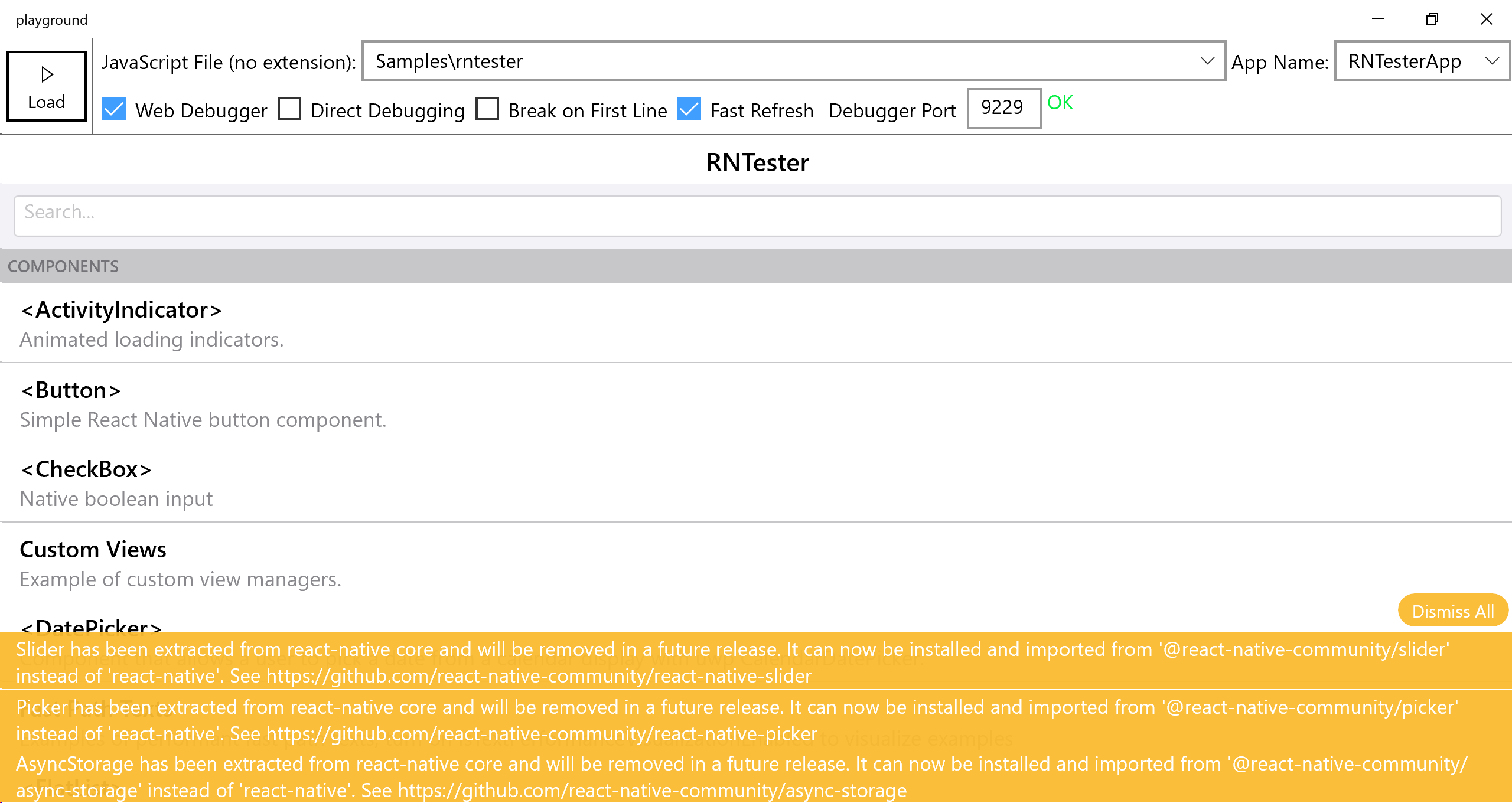 I know this is still a draft, but this struck me as a bit unexpected. Why do we need to couple Playground to WinAppDriver, etc? Can we just load the RNTester bundle within E2ETest?