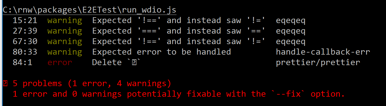 @asklar Prettier will warn about Windows style line feeds depending on config. You'll want to change what your editor is set to likely. It should not complain about single new lines.