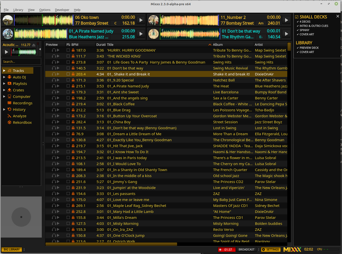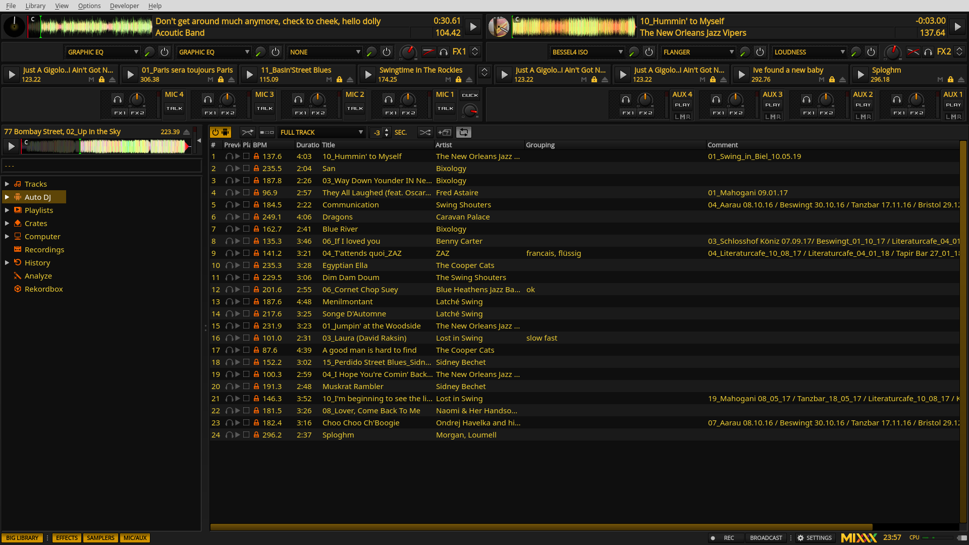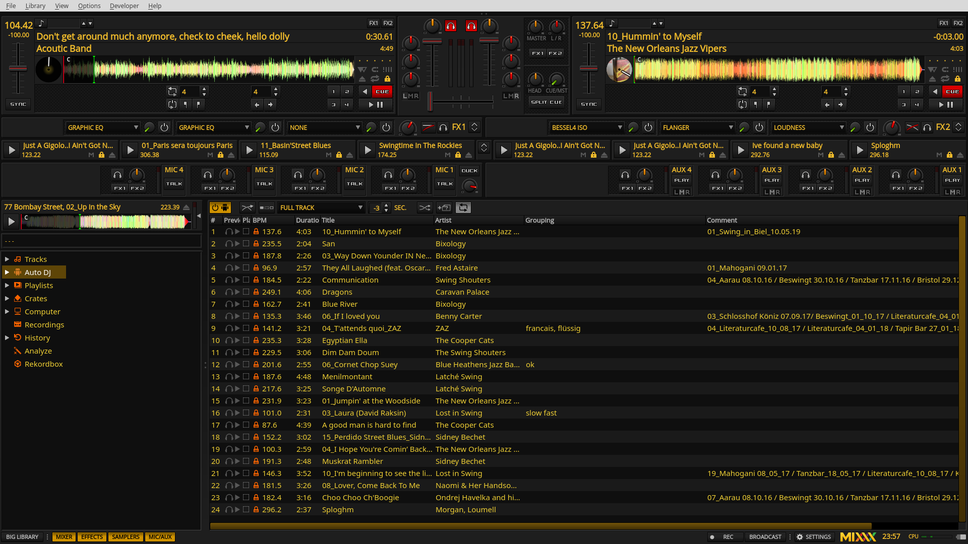 When I wrote this (and my comments on #2011 ) I thought about different use cases and I think we should clarify those before we continue. Instead of adapting a skin to specific needs which affects all users, my goal is to allow users to configure two views that can quickly be toggled with the These are the use cases I see, I bet there are more. 1 Regular view: decks, waveforms, Fx, samplers, mics 2 Preparation view: decks, waveforms, large library, 3 Condensed view: mini decks, mini Fx 4 Condesed view with waveforms 5 Decks-only view: mini decks, large sampler grid, mics What do you and others think? |