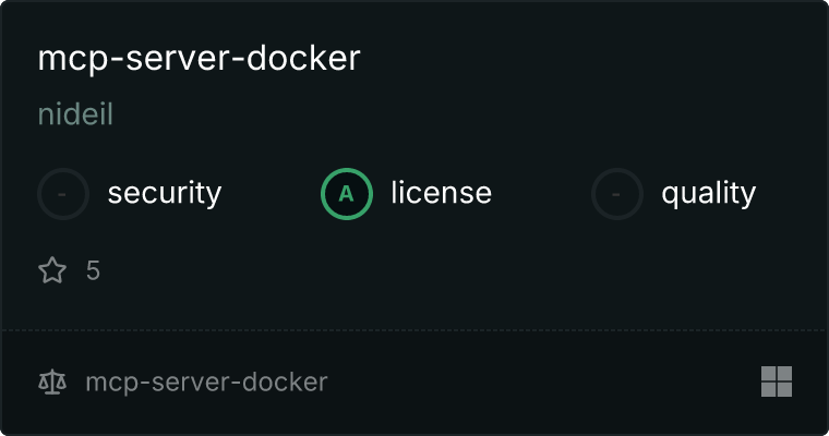 The Docker MCP Server is a Model Context Protocol (MCP) server that provides seamless integration with Docker Desktop on Windows, enabling advanced automation and interaction capabilities for developers and tools.