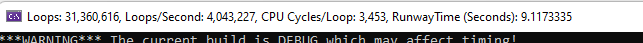 | var cpuCyclesPerLoopTotal = cntLoopsTotal == 0 ? 0 : cntCpuCyclesTotal / cntLoopsTotal; | ||
