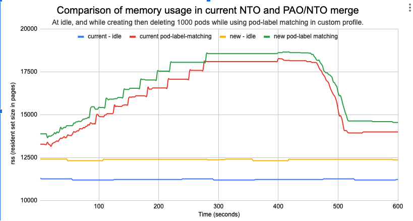 This PR performs very similarly to the current implementation of NTO. As we expected, the addition of the PAO control loop has no impact when there are no PerformanceProfiles to reconcile.