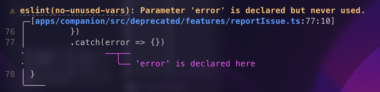Adds hyperlinks to diagnostic codes. Diagnostics without codes will not have links. In practice, this means linter diagnostics have links, while semantic and parser diagnostics do not.  > notice the underline under the error code