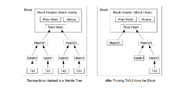 | hash is placed in each block header. This is used to easily verify the state of | ||