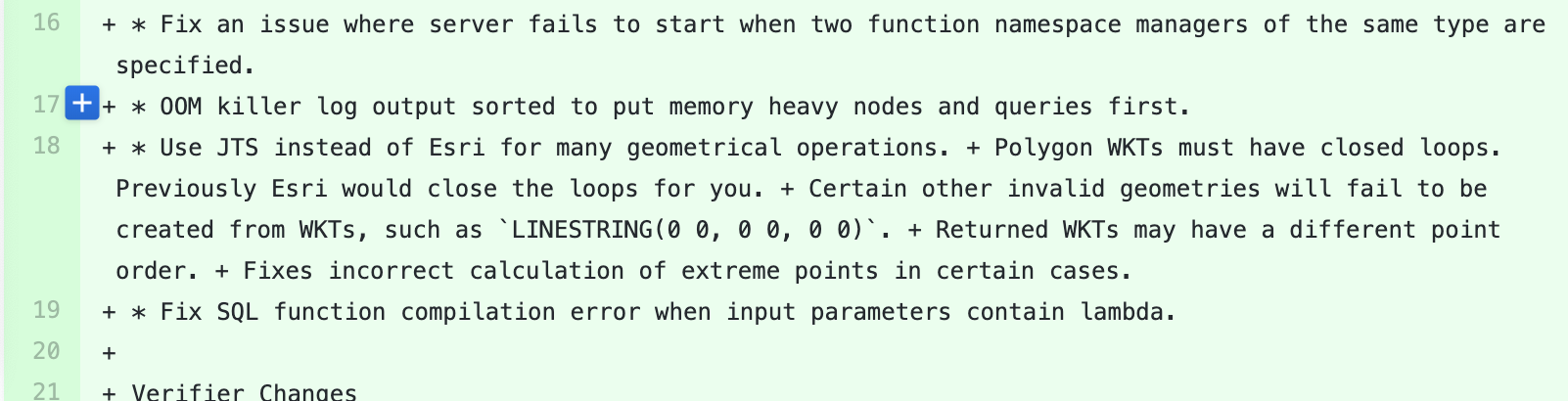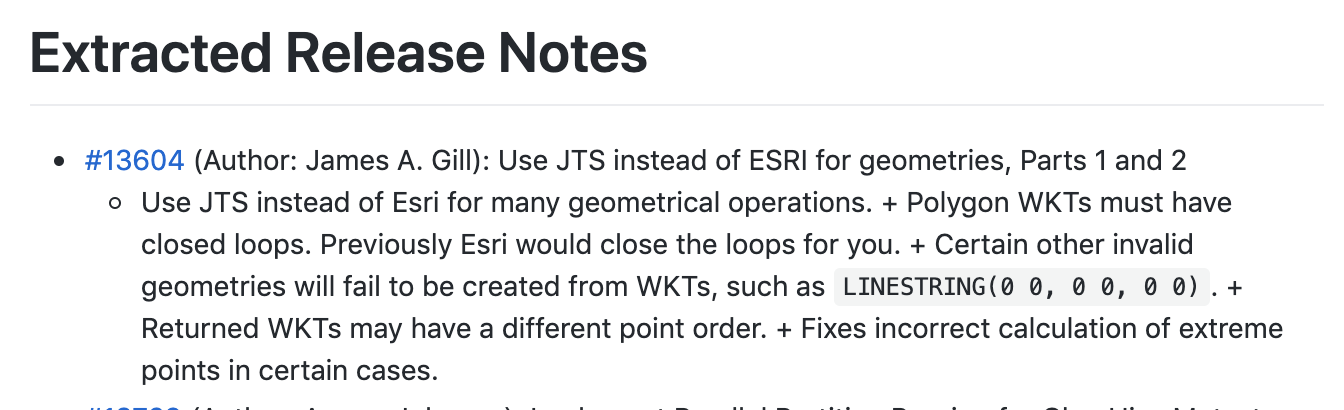 It looks like some of this PR entry didn't get preserved #13604 All the lines starting with + got turned into a run-on sentence.