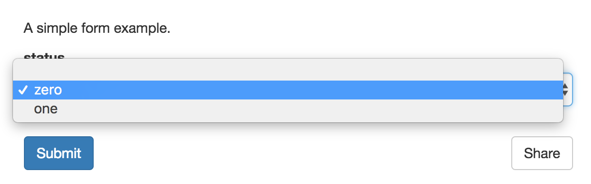 Yes, when the default is 0 or false or '' , we need an option. But i think an empty option is not the best one. And there's another bug here,i set enum = [0,1] and enumNames = ['zero', 'one'] , the empty option also showing. This result is not expected. |