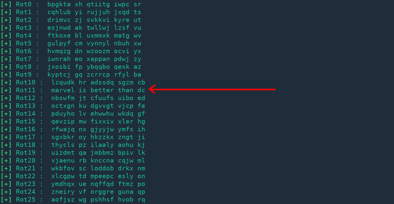 Using -rot all option on the string bpgkta xh qtiitg iwpc sr gives the following output: