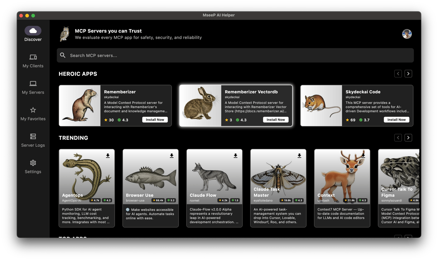 Via MseeP AI Helper App: If you have MseeP AI Helper app installed, you can search for "Rememberizer VectorDb" and install the mcp-rememberizer-vectordb.