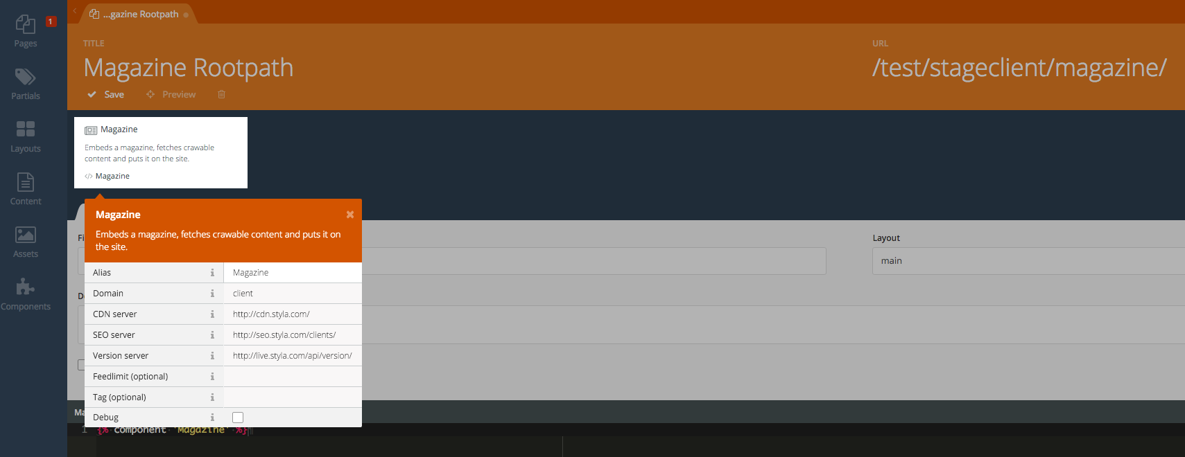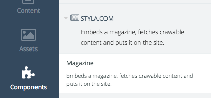 In order to fill a magazine page created within OctoberCMS with crawlable content a component must be attached to the magazine page.