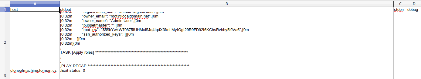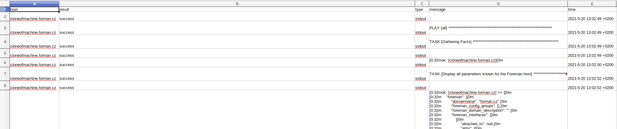 There is a simplification to only four columns - the name of host and types of outputs. Every type of output is merged with respective types. I'm aware of destroying chronological order of outputs from a job but I think it's worth it because user can just look at the "stderr" column and see what can go wrong and he don't have to dig into several logs from previous version.