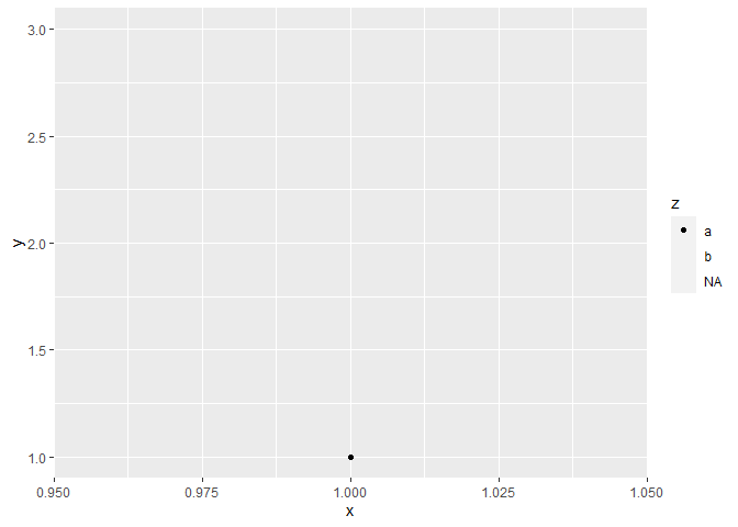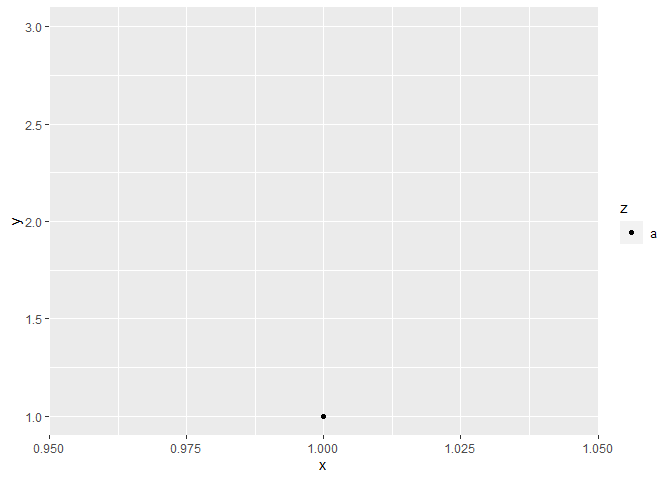 #> Warning: Removed 2 rows containing missing values (geom_point).p + scale_colour_manual(breaks = "a", values = "black")