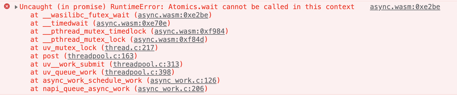 async work / tsfn may throw error in browser main thread due to pthread API use Approach: