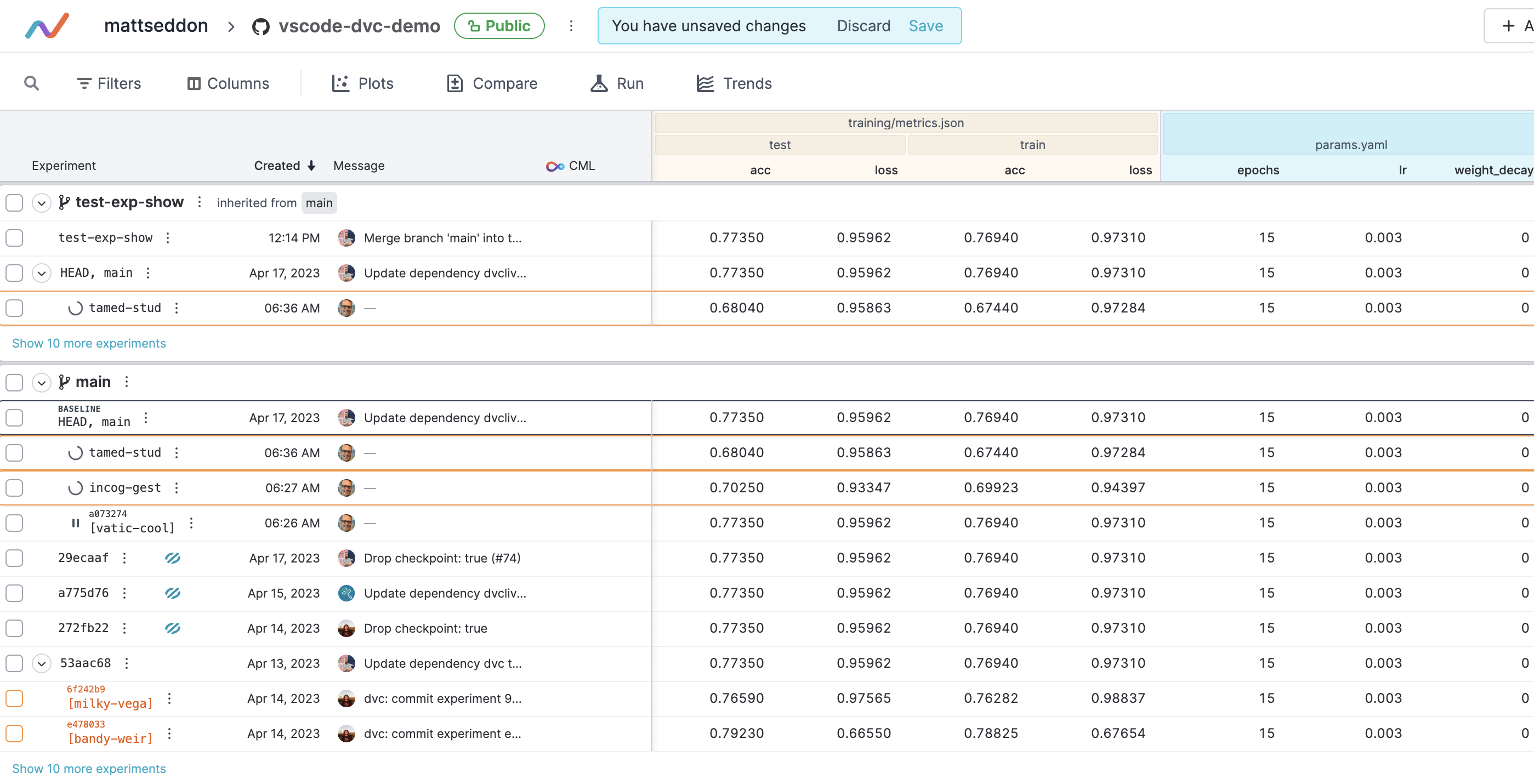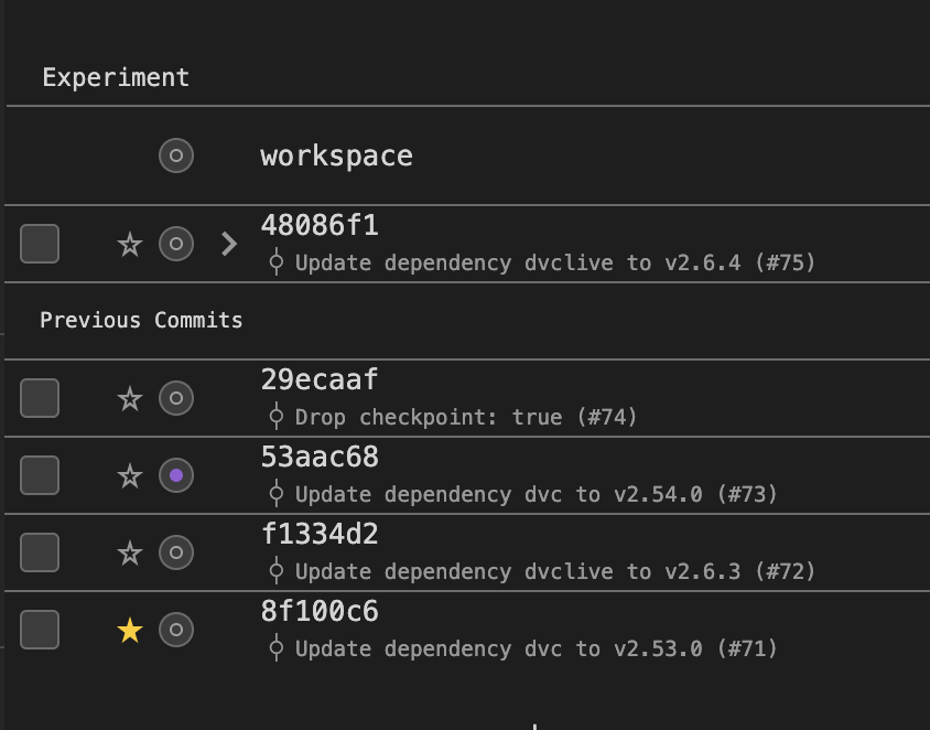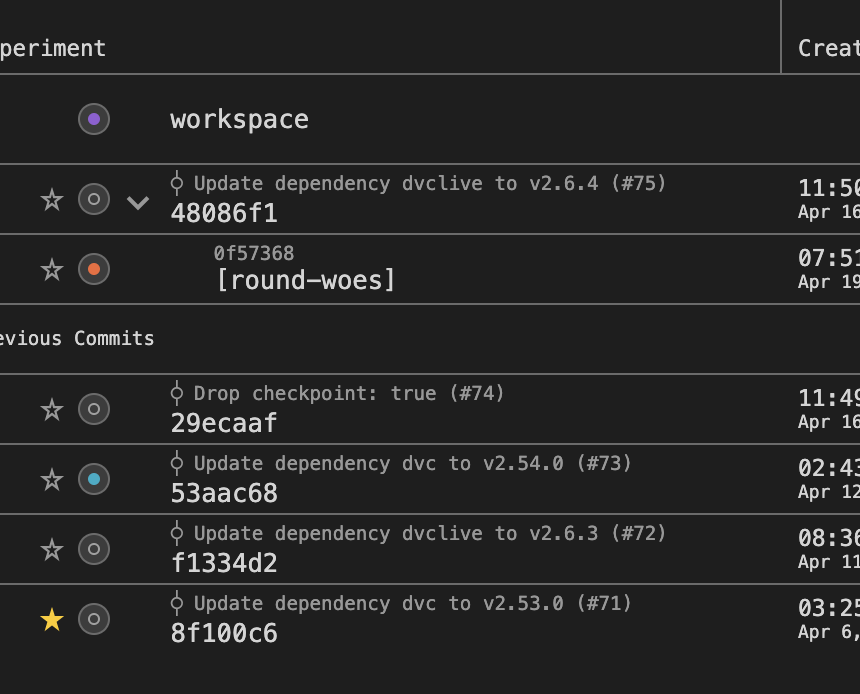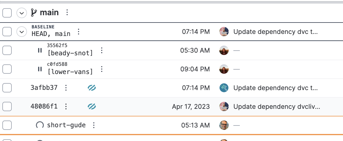 I was staring at the table for like ten minutes, trying to figure out why it looked so off to me when it finally hit me that the commit rows have secondary text second while the experiments have their secondary text first.