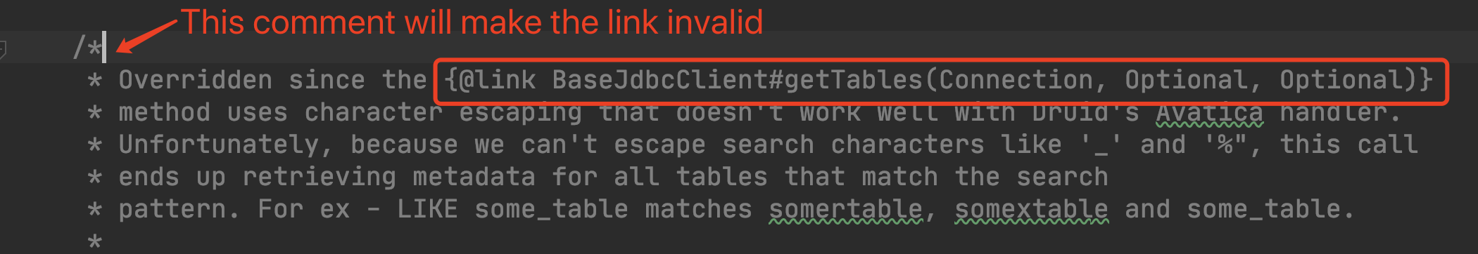 Fix code comment in Druid and base JDBC client#12066