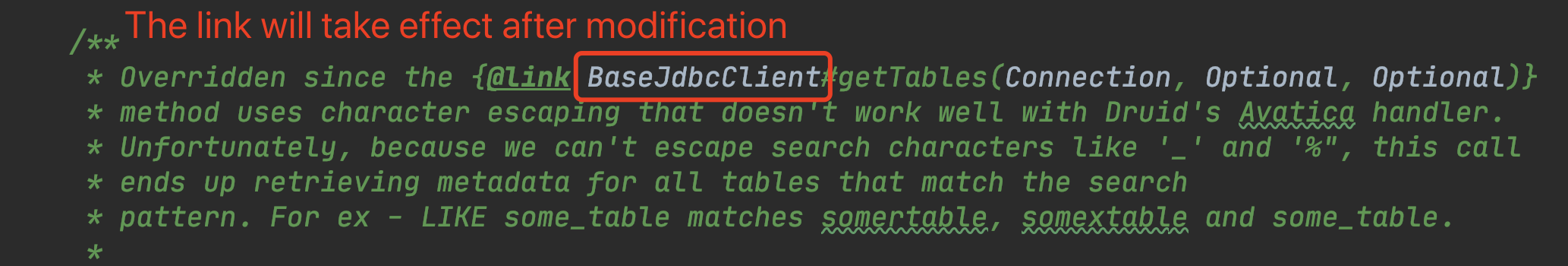 Fix code comment in Druid and base JDBC client