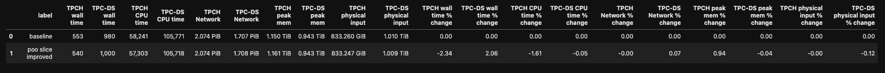 PartitionedOutputOperatorstats only, the improvement is ~10%.poo-slice-orc-part-sf1K.pdf