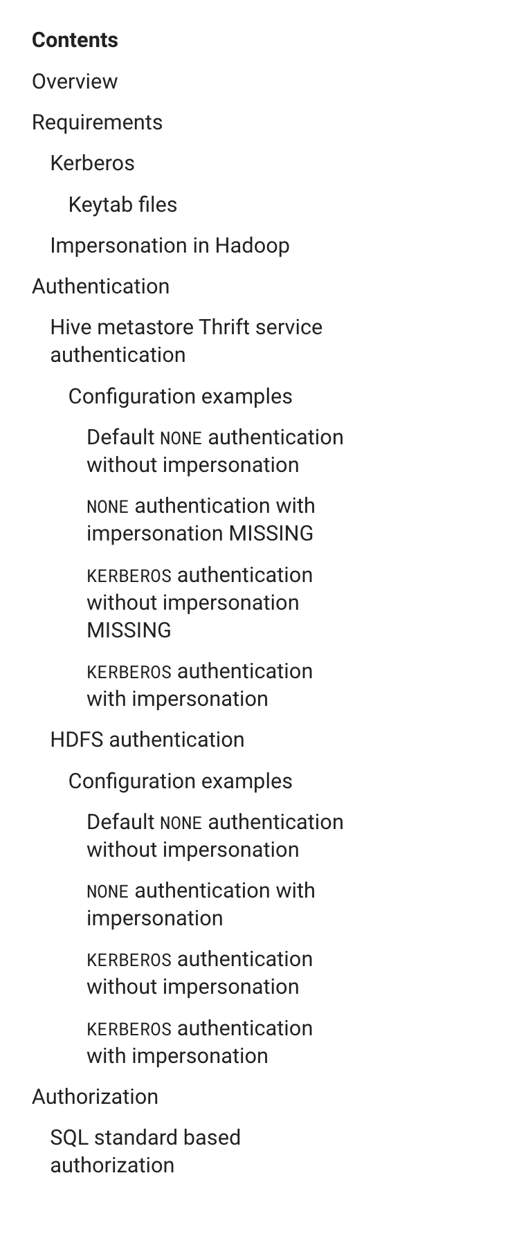 Reorganize Hive connector and Hive security documentation#15637electrum merged 1 commit intotrinodb:masterfrom