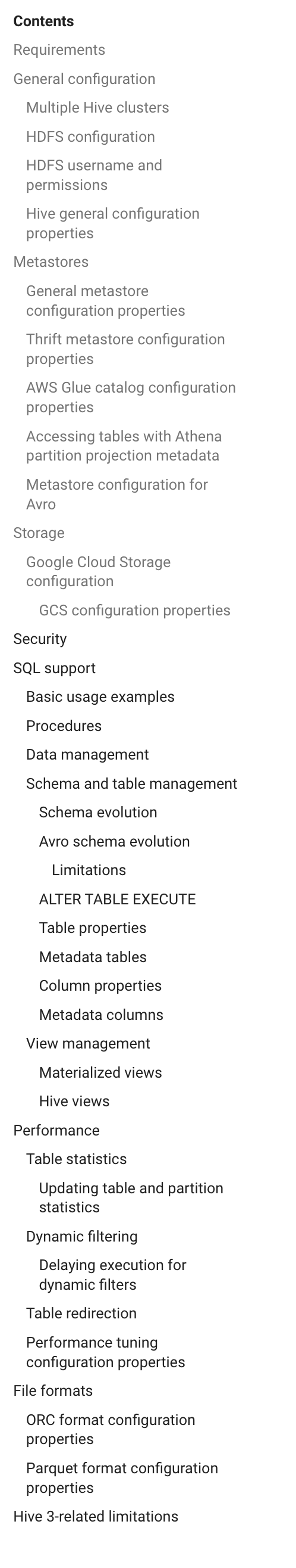 @findinpath @wendigo @ebyhr and anyone else reviewing .. I would ask you all to consider this PR as a temporary step into a very large refactor of the documentation for all object storage connectors. @m57lyra has created a great project plan and discussed it with myself, @claudiusli, @electrum, and others. The individual PRs as you can see on this first one are already very large, but are currently only moving content around or updating formatting or grammar. No technical content is changed. It therefore is only one commit. Ideally we get as many of these PRs through the merge queue as fast as possible so that we can get to the desired end state faster and then work on improving the actual content. If you want to get further details please contact @m57lyra or myself for a demo or detailed chat. |