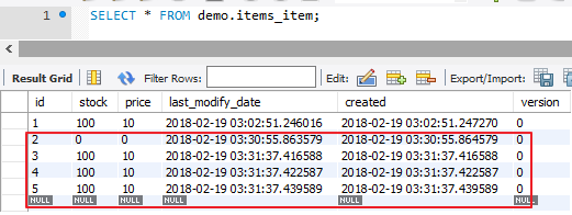 item = Item.objects.filter(id=1, version=version).update(stock=stock + 1, version=version + 1)