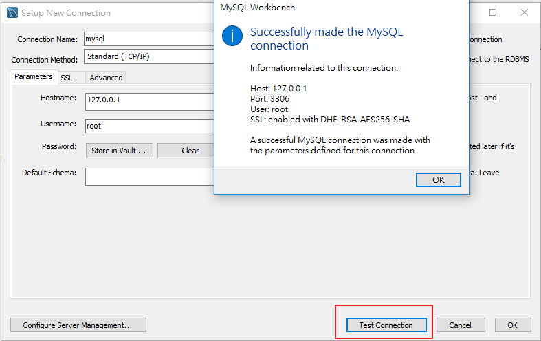 可以按 Test Connection 確認是否連接成功