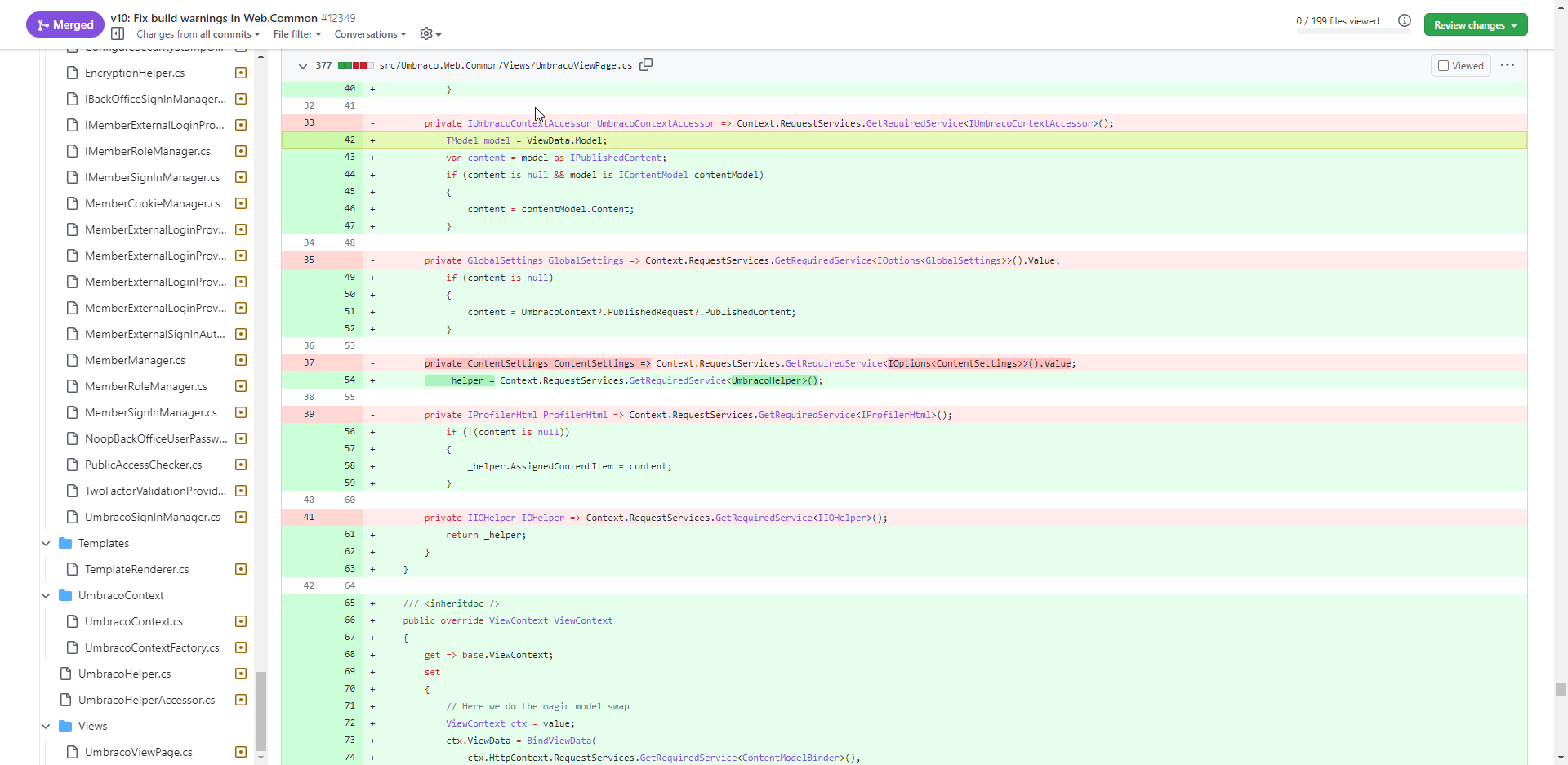 @Zeegaan the link should work, but you may need to click "Load diff" at UmbracoViewPage to see the linked line: Strange that it is your screenshot says When I inspect |