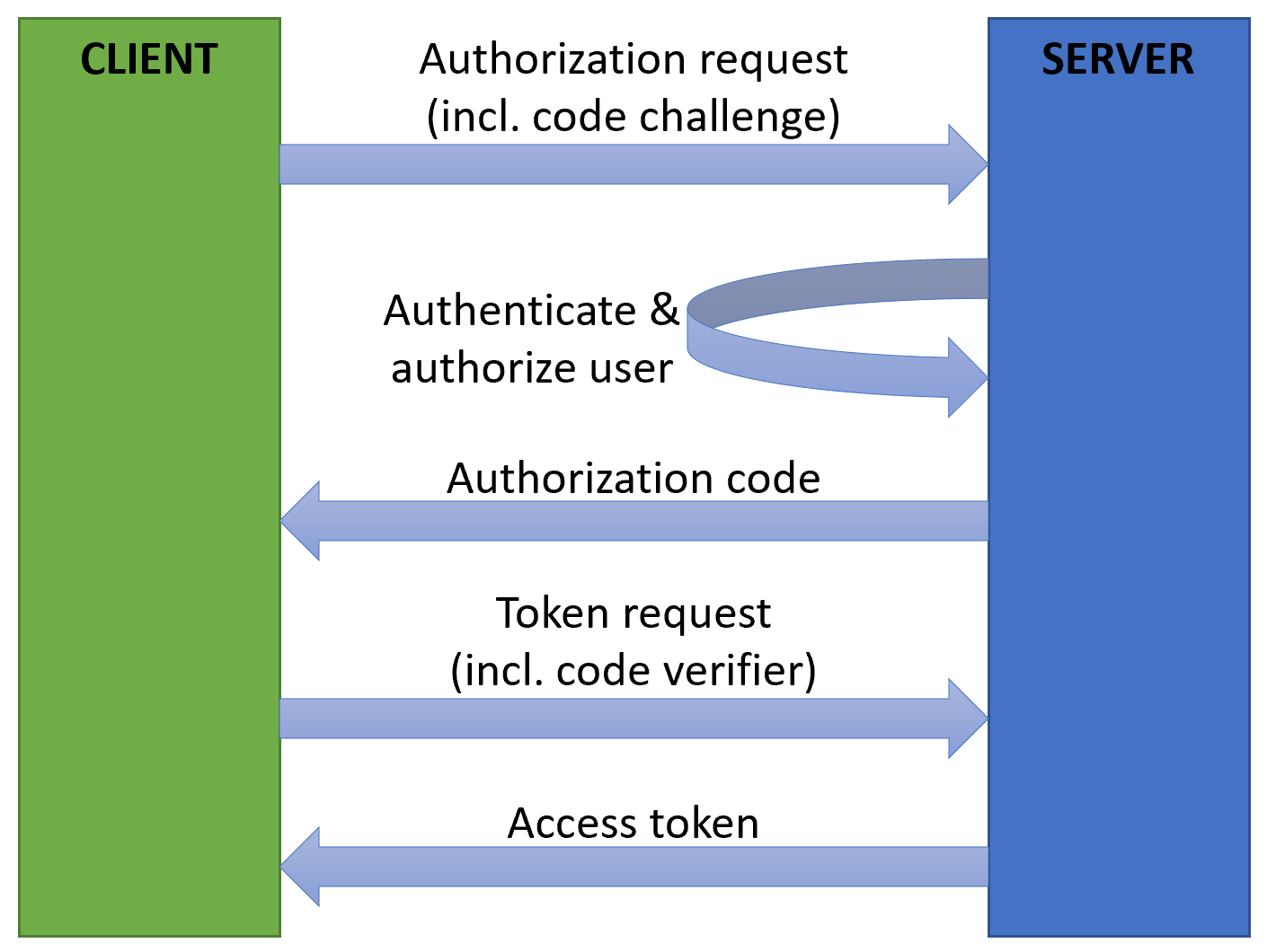 We have chosen OpenIddict as the framework for building our OpenId Connect server. For authorization we'll be using the Authorization Code Flow with Proof Key for Code Exchange (PKCE), which is the recommended flow for modern single page applications. It looks something like this: