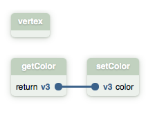 var shader = shadergraph.shader(); shader.require("getColor"); // Require two instances of callback shader.require("getColor"); shader.isolate(); shader.require("getColorSum"); // Define callback with two open callback inputs shader.end(); // Hook up both callbacks shader.pipe("setColor"); // Connect to main snippet